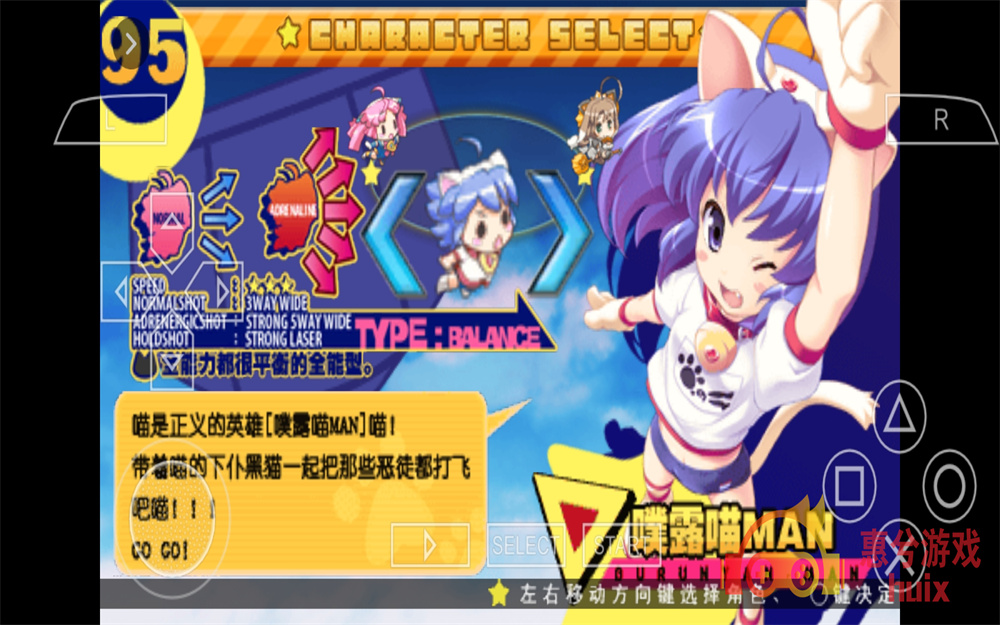 玩家要打倒就连屏幕都容纳不下的8位巨大BOSS,取回被夺走的"猫罐头"为目的,故事还将会以超乎玩家想像的全语音开展.玩家操控的分别是穿着运动服的白猫、穿校园泳装的垂耳被丢弃的小猫以及在大户人家中生活千金猫.难度分为EASY、NORMAL、HARD三种,还可以跟两位玩家共通作战,除此之外本作还有达成不同条件通关之后获得隐藏奖励的钻研要素哟.